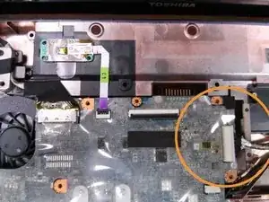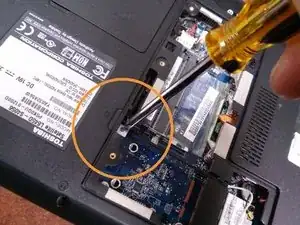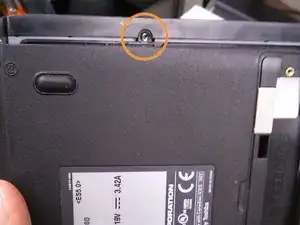 В зависимости от версии ноутбука, возможно, потребуется также удалить винт в верхнем левом углу, который фиксирует вентилятор к корпусу.