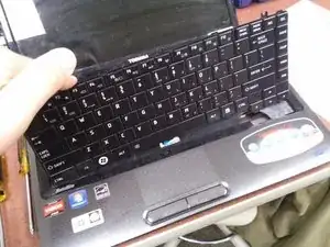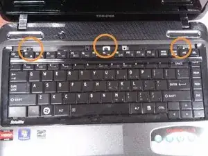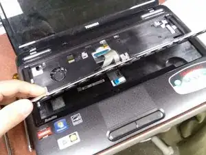 Поднимите длинную пластиковую деталь сразу над клавишами F (рамку клавиатуры).