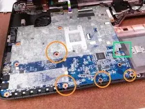 Если всё прошло успешно, вы получили доступ к материнской плате и сняли её с этого ноутбука.