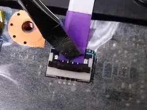 Вытащите ленточный кабель за фиолетовую планку.