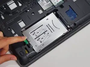 Оттяните зеленую вкладку от металлического корпуса и вытяните диск.