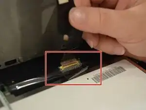 Аккуратно поднимите металлическую раму ноутбука, чтобы увидеть оставшуюся часть разъёма экрана.