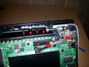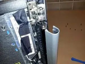 Удалите 6 винтов, чтобы снять петлю. Также есть один винт под крышкой экрана, который крепит петлю, но в моем случае он был сломан. Если он все еще на месте, вам нужно сейчас снять крышку экрана. Там несколько винтов, которые нужно удалить, но я не уверен где, так как мне не нужно было ее снимать.