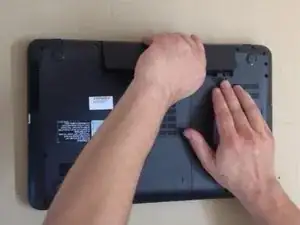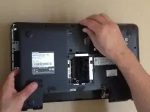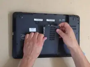Снимите крышку жёсткого диска и памяти RAM.
