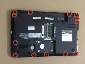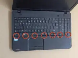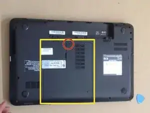 Используя пластиковый инструмент, отделите нижнюю часть корпуса от ноутбука.