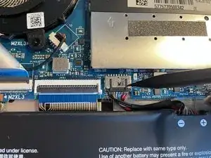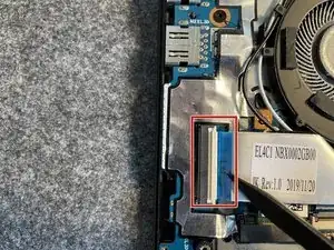 В первую очередь отключите аккумулятор перед продолжением. Осторожно отсоедините разъём батареи с помощью лопаточки.