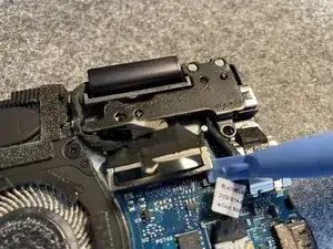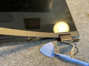 Осторожно отсоедините разъём дисплея с правой стороны с помощью лопаточки