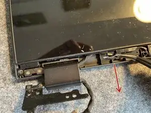 После отключения всех кабелей и разъёмов от материнской платы аккуратно приподнимите петли и отделите узел дисплея от остальной части устройства.