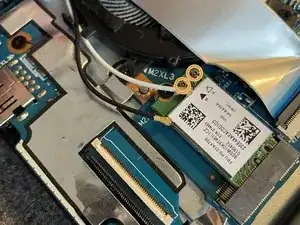 Пинцетом приподнимите разъёмы Wi‑Fi из их гнёзд. Будьте осторожны, чтобы не повредить кабели.