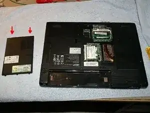 Die mittlere Abdeckung (RAM, WLAN) entfernen. Die zwei Schrauben sind im Deckel fixiert.