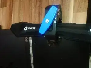 После того как инструмент вставлен вдоль одной короткой стороны, аккуратно разрежьте клей с терпением, нагревом и спиртом. Затем повторите предыдущий шаг для другой короткой стороны.