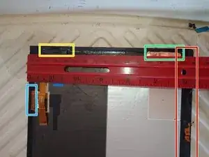 Слева, 1,5–4 см (~0,5–1,5 дюйма) вниз от верха: здесь находится сложенный слой (вероятно) дигитайзера. Я с ним не пересёкся, но будьте аккуратны и не режьте слишком глубоко.