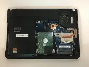 Положите ноутбук на ровную поверхность нижней стороной вверх.