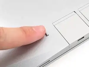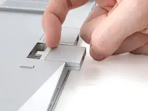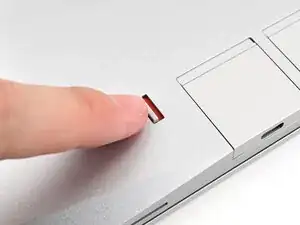 При сборке установите новую плату на направляющую и плотно вдавите её, пока её край не станет ровным с краем корпуса ноутбука.