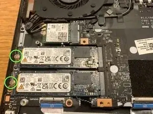 Снимите 2 серебристых винта PH1 длиной 2 мм (M2 x L2), по одному для каждого SSD.