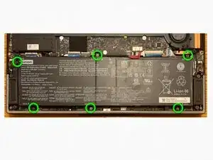 Снимите 6 чёрных винтов PH1 длиной 4 мм (M2 x L4). Нижний правый винт находится близко к магниту, который может притянуть его — могут понадобиться пинцет. В Руководстве по техническому обслуживанию не показан центральный нижний винт.
