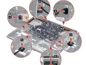 Отсоедините 9 кабелей, подключенных к системной плате.