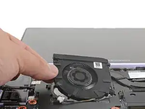 Используйте отвертку Framework, чтобы ослабить два захваченных винта T5 Torx, крепящих вентилятор.