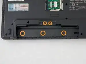 Снимите все винты Phillips #1 диаметром 8 мм на задней стороне ноутбука.