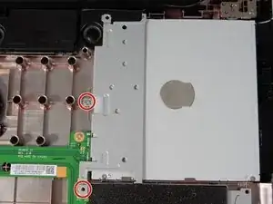 С помощью крестовой отвертки Phillips #0 открутите два винта (5,6 мм) вокруг оптического привода.