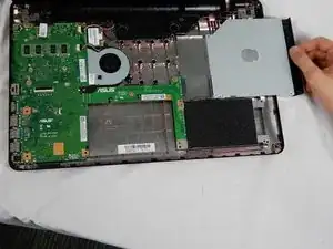 Сдвиньте оптический привод вправо, чтобы вынуть его из корпуса ноутбука.