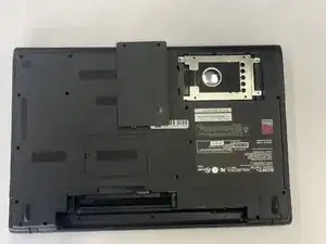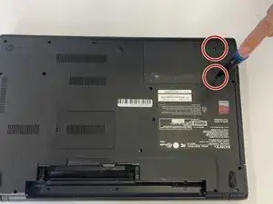 Переверните ноутбук так, чтобы его нижняя сторона была сверху и была видна.