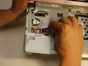 Просуньте руку под клавиатуру и отсоедините электрическое соединение.