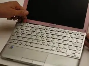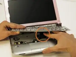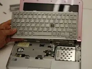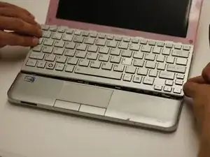 Поднимите узел клавиатуры и отведите его от нетбука.