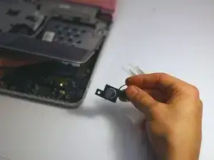 Используйте крестовую отвертку Phillips #0, чтобы удалить два фиксирующих винта узла динамика.
