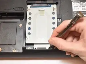 Используйте насадку отвертки JIS, чтобы убрать винты JIS #0 длиной 3,7 мм в основании жесткого диска.