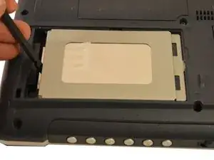 Используйте лопатку, чтобы отсоединить жесткий диск, сдвинув весь накопитель вправо.
