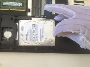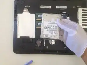 Сдвиньте HDD, чтобы отключить его от SATA-разъёма, и извлеките его.