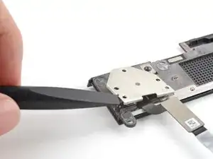 Используйте плоский конец отвертки Framework, чтобы поднять крышку датчика отпечатков пальцев и снять её.