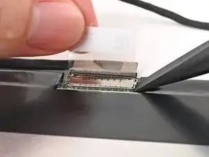 Используйте плоский конец отвертки Framework, чтобы поднять металлическую замковую вкладку над разъемом дисплея.
