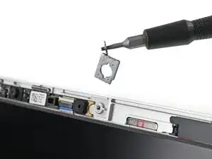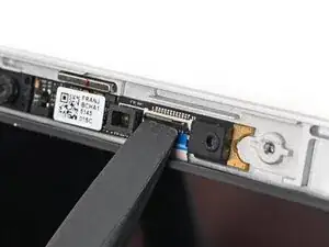 Используйте плоский конец лопатки или чистый ноготь, чтобы поднять блокирующий язычок на ZIF-разъеме веб-камеры.
