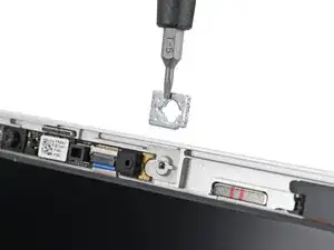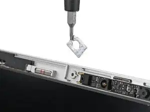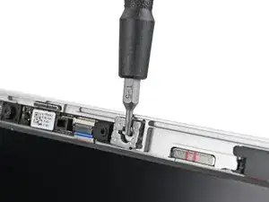Поддерживая экран одной рукой, используйте отвертку Framework, чтобы удалить два винта Torx T5 длиной 2,0 мм, крепящих веб-камеру.