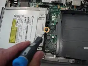 Удалите единственный винт, удерживающий оптический привод в корпусе.