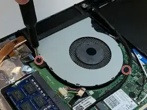 Удалите два винта из вентилятора с помощью отвертки Phillips #0.