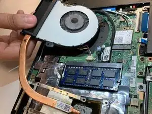 Осторожно извлеките сборку вентилятора из ноутбука.