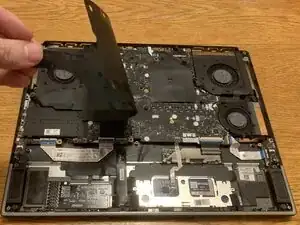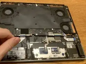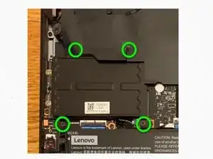 Удалите 4 черных винта PH1 (M2 x L4), а затем снимите экран SSD.
