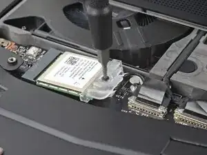 Используйте отвертку Framework для ослабления закрепляющего винта T5 Torx, удерживающего модуль Wi-Fi.