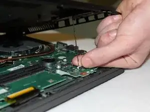 Не удаляйте её полностью. Только ослабьте соединение между задней панелью и ноутбуком. Будьте осторожны, чтобы не повредить VGA-порт, так как он может легко зацепиться за заднюю панель на этом этапе.