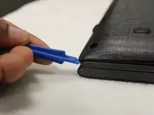 Вставьте инструмент для открытия в стыковое соединение корпуса ноутбука и начните приподнимать заднюю панель от устройства, чтобы ослабить ее. Медленно двигайтесь по всему кругу ноутбука, периодически приподнимая, чтобы освободить каждый из фиксирующих зажимов.