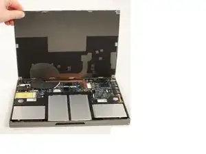 С помощью лопатки (или другого плоского, но слегка тупого предмета) аккуратно приоткройте ноутбук