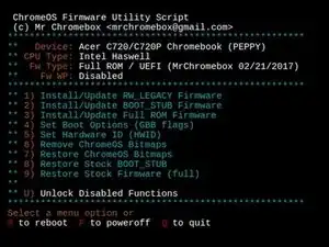 Mr. Chromebox — это разработчик, который экономит нам всем массу времени, предоставив универсальный скрипт для ввода команд. Перейдите на страницу его скрипта прошивки Chrome OS и введите команду с той страницы (начиная с cd; curl ...).