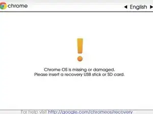 Когда вы увидите восклицательный знак и сообщение «Chrome OS is missing or damaged», нажмите Control+D