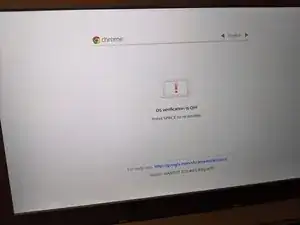 Когда Chromebook перезагрузится, появится ещё одно предупреждение: «Проверка ОС отключена.» Нажмите Ctrl+D ещё раз, чтобы пройти это предупреждение.