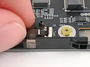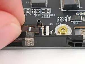 Используйте плоский конец отвёртки Framework или чистый ноготь, чтобы приподнять и разблокировать запорный язычок одного из разъёмов с ленточным контактом ZIF ZIF connectors.