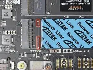 В зависимости от размера вашего SSD может понадобиться изменить позицию винта и подрезать прилагаемую термопрокладку, чтобы она соответствовала SSD.