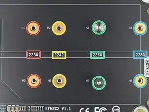Следующие шесть шагов покажут, как установить 2280 SSD. Если вы устанавливаете SSD меньшего размера, перейдите к этому шагу.